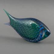 Meerkleurige glazen vis, glasblazer Arthur Zirnsack, uitvoering Studio Åhus, Zweden, op onderzijde gemonogrammeerd en gedateerd 2007, circa 36 cm lang
