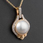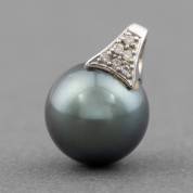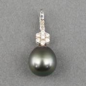 18kt witgouden hanger gezet met diamant en Tahitiparel, circa 12 mm
