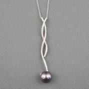 18kt witgouden choker met centraal een gedraaid deel volledig gezet met diamant, waaraan een Tahitiparel, brutogewicht 8,6 gram, 40 cm