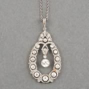14kt witgouden negligécollier, platina en palladium hanger gezet briljantgeslepen diamant, circa 1.50ct, kwaliteit VS, kleur G/H, en twee kleine diamantjes en een brutogewicht 4,4 gram, 44 cm