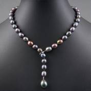 Collier van petrolkleurige gecultiveerde parels, aan het eind een grote parel, verstelbaar door middel van een onedele clip, 55 cm