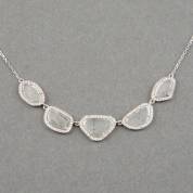 Platina negligé gezet met drie roosgeslepen diamanten, totaal circa 0.90ct, brutogewicht 5,2 gram, 41 cm
