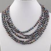 Vijfstrengs parelcollier van donkergetinte barok zoetwaterparels aan 1e gehalte zilveren schuifslot, 46 cm