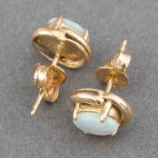 Paar 18kt gouden oorstekers gezet met ovaal cabochongeslepen opaal, brutogewicht 1,8 gram, 0,8 cm