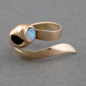 14kt gouden lint ring, gezet met opaal, mt. 17,5, brutogewicht 6,8 gram -één steen mist, andere beschadigd-