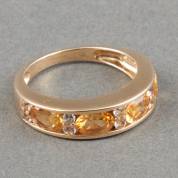 14kt gouden ring gezet met vier ovaal gefacetteerde citrienen en tien briljantgeslepen simuli, mt. 17,5, brutogewicht 4,0 gram