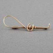 14kt gouden broche in de vorm van een zweep met hoefijzer, gewicht 3,4 gram, 6 cm