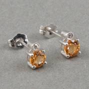 Paar 14kt witgouden oorstekers, elk gezet met ovaal gefacetteerde citrien en achtkantgeslepen diamant, brutogewicht 1,4 gram, 7 mm