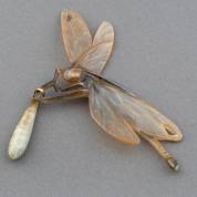 Hoornen libellehanger, waaraan een pegelvormige pampel, art nouveau, ook als broche te dragen, gesigneerd: GIP voor George Pierre, Frankrijk, circa 1900, circa 12 × 12 cm -verf pampel laat los-