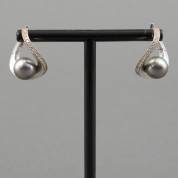 Paar 18kt witgouden ringvormige oorstekers, elk gezet met Tahitiparel en twintig achtkantgeslepen diamanten, brutogewicht 16,4 gram, circa 2,5 cm