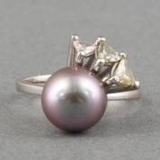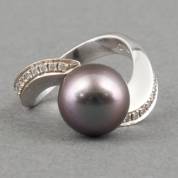 18kt witgouden slagring gezet met Tahitiparel, Ø 11 mm, de scheen gezet met 24 achtkantgeslepen diamanten, mt. 17, brutogewicht 9,2 gram