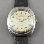Stalen herenpolshorloge, Baume & Mercier, kastnummer: 86322, uurwerk: eta 2632 automaat, aan zwart lederen band met gespsluiting, jaren '70, 36 Ø mm -wijzerplaat verweerd en gebruikssporen-