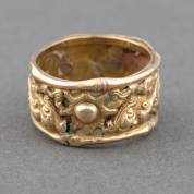 14kt gouden Oosterse bandring met reliëf, mt. 18,5, gewicht 6,8 gram -defecten en reparaties-