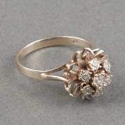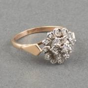 14kt wit- en geelgouden rozetring, gezet met 19 enkelgeslepen diamanten in spiegelchatonzetting, mt. 16,5, brutogewicht 2,8 gram
