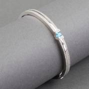 14kt witgouden stijve armband gezet met carrégeslepen topaas en pavégezette diamant, gemerkt Le Chic, brutogewicht 27,6 gram, binnenmaat 6 cm
