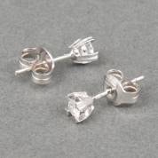 Paar 18kt witgouden solitairoorstekers gezet met briljantgeslepen diamant, totaal circa 0.20ct, brutogewicht 1,2 gram