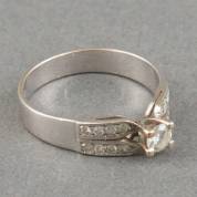 14kt witgouden ring centraal gezet met briljantgeslepen diamant, circa 0.15ct, geflankeerd door zestien achtkantgeslepen diamanten, mt. 17,25, brutogewicht 2,6 gram