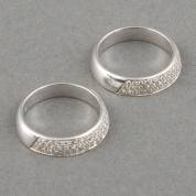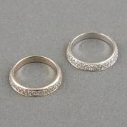 Paar 18kt witgouden aanschuifringen deels pavégezet met diamant, mt. 18,25, brutogewicht 14,4 gram
