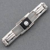 14kt witgouden speld gezet met onyx, diamant en bergkristal, brutogewicht 3,8 gram, 4,2 cm
