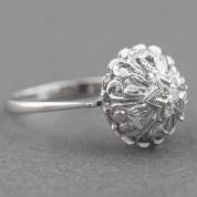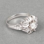 18kt witgouden rozetring gezet met zeven achtkantgeslepen diamanten, mt. 17,25, brutogewicht 3,8 gram