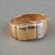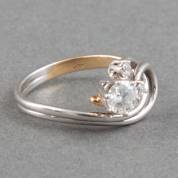 14kt bicolor gouden slagring gezet met drie briljantgeslepen diamanten, grootste diamant circa 0.40ct, totaal circa 0.46ct, kleur G/H, kwaliteit VS/SI, mt. 17,5, brutogewicht 3,0 gram
