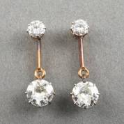 Paar BWGG oorhangers elk gezet met twee briljantgeslepen diamanten in zilveren chatonzetting, totaal circa 1.80ct, brutogewicht 2,8 gram, in juweliersdoosje