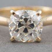 18kt gouden solitairring gezet met oud mijngeslepen diamant, 3.26ct, kwaliteit SI1, kleur M, in vierpoots chatonzetting, mt. 17,75, brutogewicht 5,4 gram, met certificaat HRD Antwerp met nummer 2500000017447