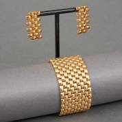 18kt gouden Milanese schakelarmband aan bakslot met twee veiligheidsachtjes, daarbij: van twee extra schakels gemaakt een paar oorstekers, gewicht 124, gram