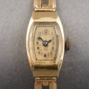 14kt gouden damespolshorloge, Commodoor, DeLuxe, kastnummer: 33937, uurwerk: handopwind, aan 14kt bicolor bandje, gewicht zonder uurwerk en glas: 20.2 gram, 10 × 30 cm
