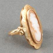 BWGG cameering gezet met schelpcamee met dame en profil, mt. 16, brutogewicht 3,4 gram