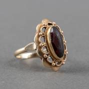 14kt gouden ring gezet met ovaal cabochongeslepen granaat, mt. 18,75, brutogewicht 5,2 gram -steen sleets-