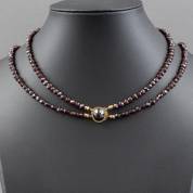 Granaten collier van gefacetteerde bolkralen aan 14kt gouden pastonslot, 80 cm