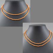 Twee bloedkoralen kralencolliers van kleine bolkralen aan 14kt gouden kapittelslotje, 82 en 98 cm