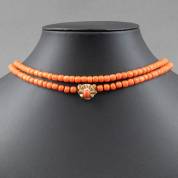 Bloedkoralen stokjescollier, aan onedele veerring, 48 cm