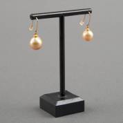 Paar 14kt gouden oorhangers met getinte gecultiveerde parel, brutogewicht 5,0 gram, 2 cm