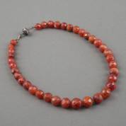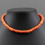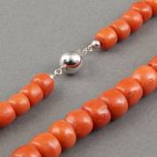 Bloedkoralen collier van en-chûte geregen tonkralen, gewicht 103 gram, circa 80 cm