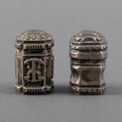Paar zilveren miniatuur karaffen, meester: A.W. Kijlstra, Leeuwarden, 1896-1943, gewicht 102 gram, 6 cm -deukjes-