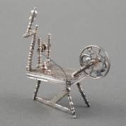 2e gehalte zilveren miniatuur: spinnewiel, gewicht 52 gram, 9 × 7,5 × 2,5 cm -draad defect-