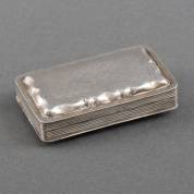 2e gehalte zilveren snuifdoosje met stippel gravering en lijnendecor, meester: Cornelis van Gelderen, Schoonhoven, 1871, gewicht 31 gram, 2 × 7 × 4 cm -gebruikssporen-