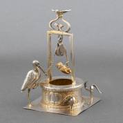 3e gehalte verguld zilveren miniatuur waterput met ooievaar en baby, gemerkt KS in schild, 20e eeuw, gewicht 94 gram, 9,5 × 6 × 6 cm
