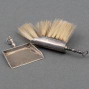 Zilveren miniatuur: stoffer en blik, beide meester Arnoldus van Geffen, Amsterdam, blik 1743 en stoffer 1765, brutogewicht 26 gram, lengte stoffer 6 cm