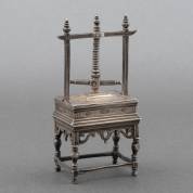 Zilveren miniatuur: linnenpers, meester: Arnout Vorsterman, Amsterdam, tweede helft 17e eeuw, gekeurd met bijltje, hoogte 8,5 cm