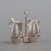 Zilveren miniatuur: olie- en azijnstel, meester: Frederik van Strant, Amsterdam, circa 1700, gewicht 93 gram, 7,5 × 9 × 3 cm