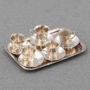 Set van elf 2e gehalte zilveren miniaturen: dienblad met vijf kop- en schotels, gewicht 25 gram