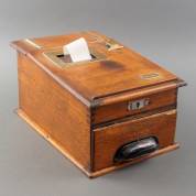 Eikenhouten toonbankkassa, uitvoering Fa. Herman de Haas, Nijmegen, circa 1900 -gebruikssporen-, 22,5 × 28 × 44 cm