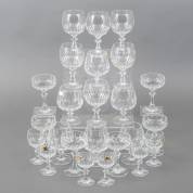 Zespersoons kristallen glasservies, bestaande uit: cognacglazen, wijnglazen, likeurcoupes en likeurglaasjes