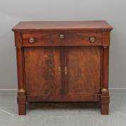 Mahoniegefineerd penantkastje, empire -stuk van poot los maar aanwezig, enkele fineerschades aan rand van blad-, 100 × 106 × 50 cm
