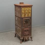 Hoge kachel met groengeglazuurde tegels -ijzer wat roestig, afbrokkelend glazuur van tegels-, 122 × 43 × 55 cm