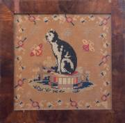 Merklap: zittende kat, gemonogrammeerd T.B.T. en gedateerd 1853 -verkleurd-, 39 × 39 cm