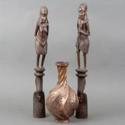 Paar Afrikaanse hardhouten beelden, en koperen vaas, beelden 59 cm